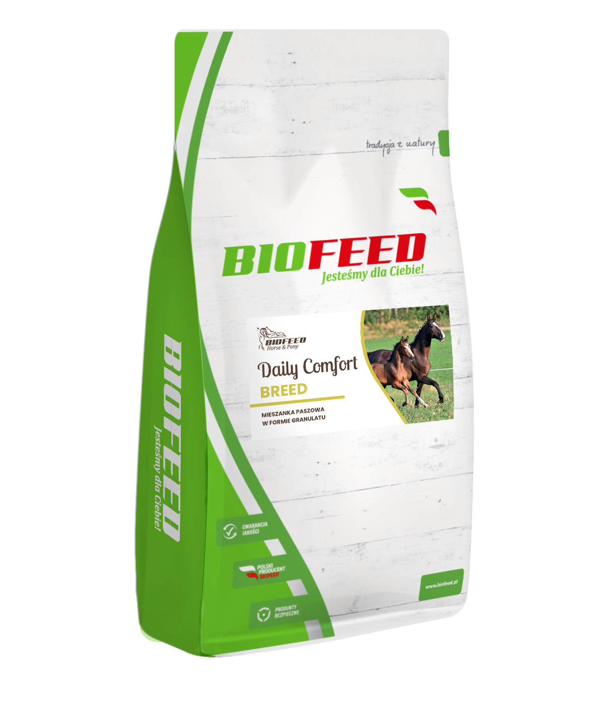SKŁAD: jęczmień, łuska owsiana, śruta poekstrakcyjna z nasion słonecznika, granulat z lucerny, granulat z traw, pulpa jabłkowa suszona, kukurydza, melasa, węglan wapnia, olej sojowy, fosforan jednowapniowy, tlenek magnezu, makuch z siemienia lnianego, drożdże, kwiat nagietka