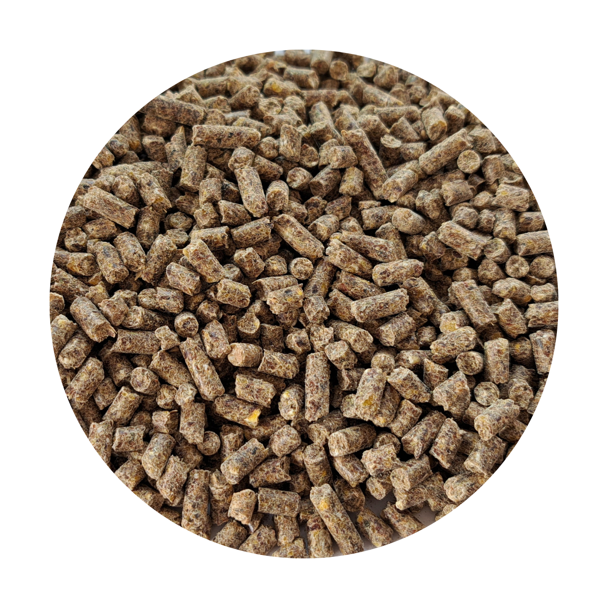 - wszystkie składniki odżywcze, witaminy i minerały ulokowane w twardej granuli, zapobiegającej wydmuchiwaniu ze żłobu oraz selektywnemu wybieraniu smaczniejszych surowców, co zapobiega niedoborom składników pokarmowych