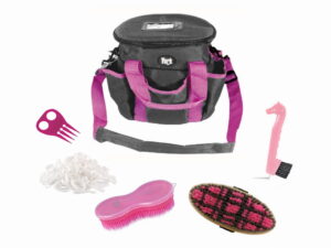 Kompletny zestaw do pielęgnacji konia z torbą szaro-liliową