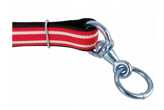 Solidna i mocna obroża dla byków i krów z krętlikiem. Wykonana z mocnego materiału jakim jest nylon.Podwójnie szyta oraz wzmacniana dodatkowym pasem. Specjalny splot materiału zapewnia wyjątkową wytrzymałość. Mocne ocynkowane okucia zapewniają wysoką trwałość. Szwy o dużej wytrzymałości. Zakończenia i otwory zabezpieczone termicznie. Obroża posiada wygodną regulację dzięki czemu można dopasować ją do zwierząt o różnej wielkości i masie. Z zintegrowanym stalowym krętlikiem o grubości 8 mm który służy do zapobiegania skręcaniu się i umożliwia swobodne obracanie się. Dobrze widoczny czerwony kolor.