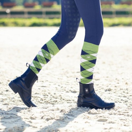 - Klasyczne podkolanówki w romby wykonane z dobrej jakości bawełny.
