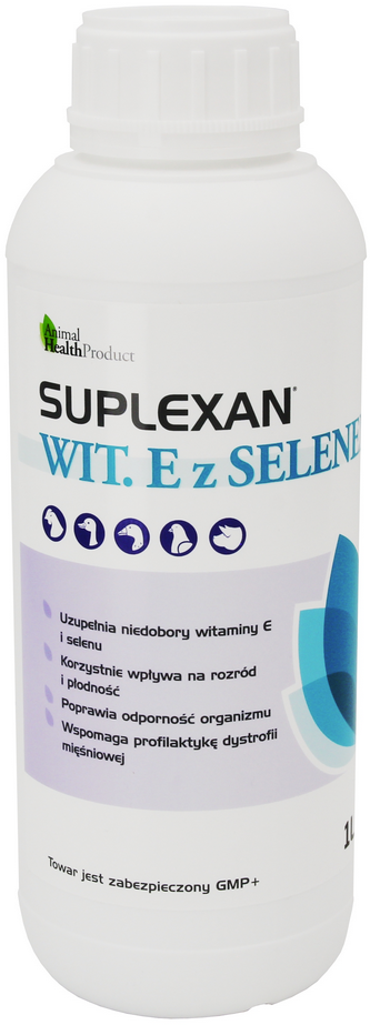 Opis: produkt zawiera przede wszystkim witaminę E oraz selen. Oba składniki chronią komórki przed uszkodzeniem na skutek stresu oksydacyjnego, co przekłada się na zwiększone parametry płodności i rozrodu oraz odporność. W składzie produktu znajduje się również olejek z rozmarynu i metionina.