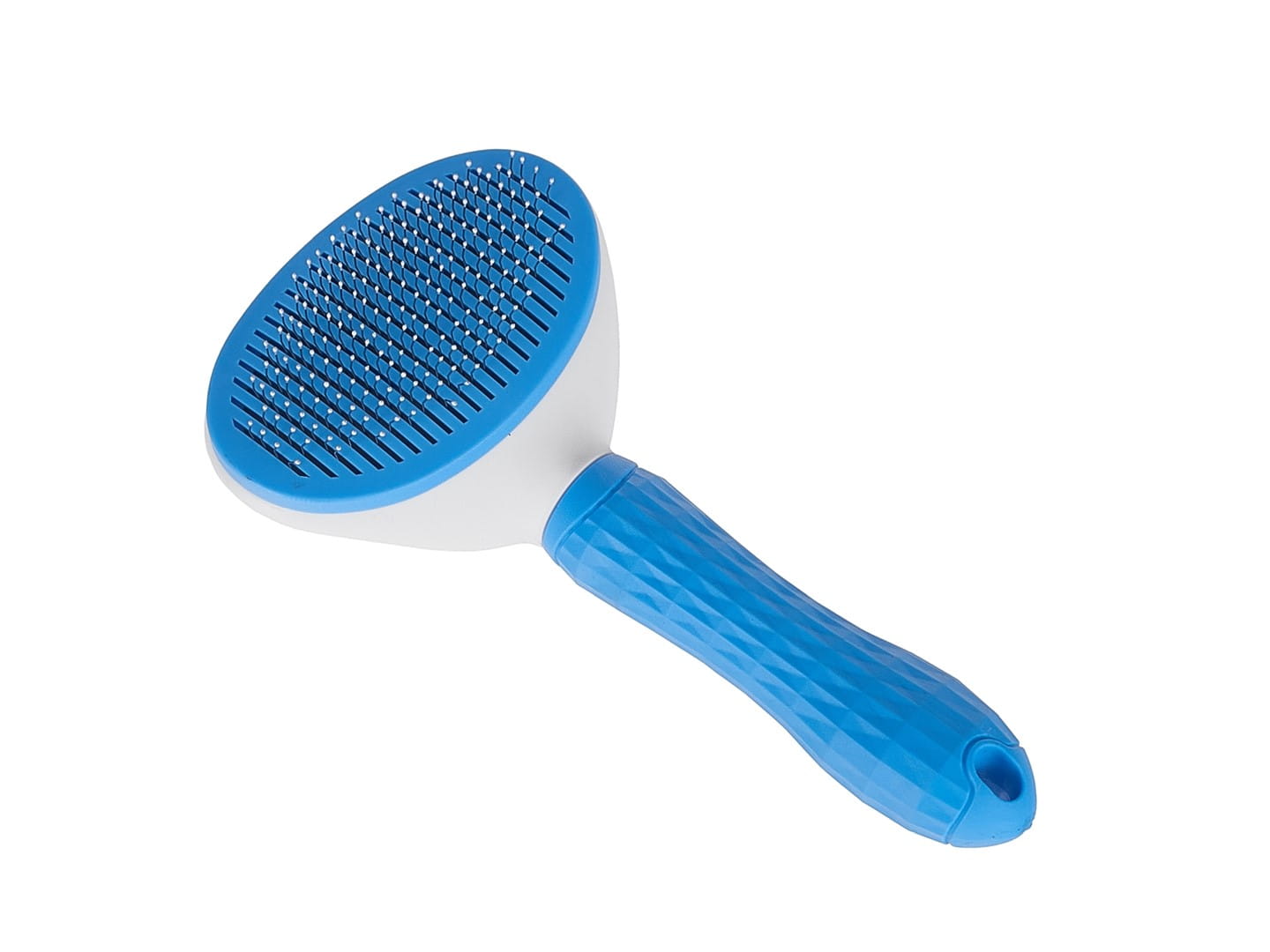 Szczotka jest wyposażona w specjalny przycisk do samoczyszczenia. Po jego naciśnięciu, nasadka z igłami szczotki wysuwa się do przodu, co automatycznie usuwa zgromadzone na niej włosy, sierść czy inne zanieczyszczenia. Dzięki temu proces czyszczenia szczotki jest szybki i higieniczny, bez konieczności ręcznego usuwania włosów.