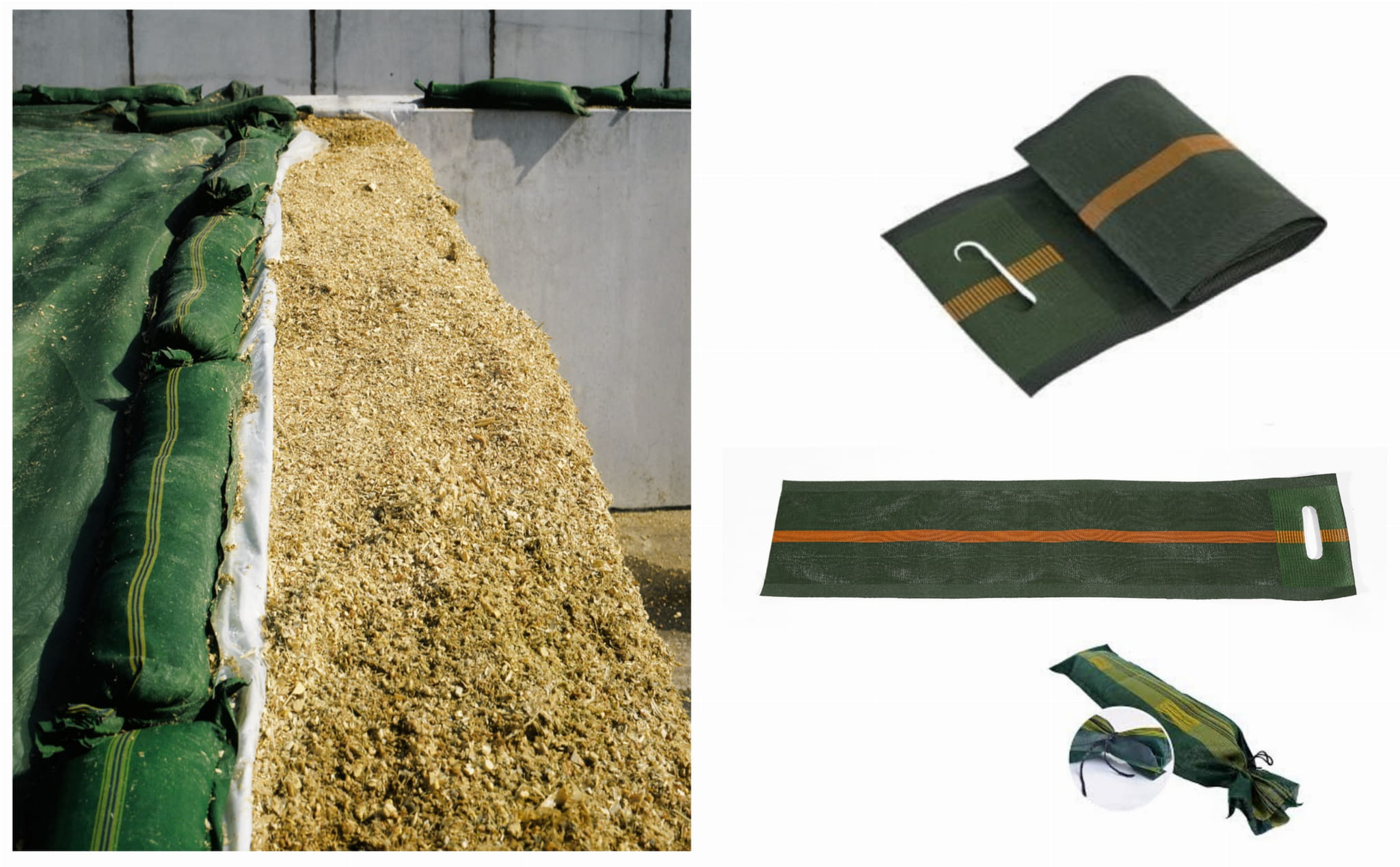 - zastosowanie worków zapewnia pełne uszczelnienie krawędzi silosu chroniąc zakiszany materiały przed dostępem powietrza oraz zabezpieczając folię i siatkę przed przesuwaniem