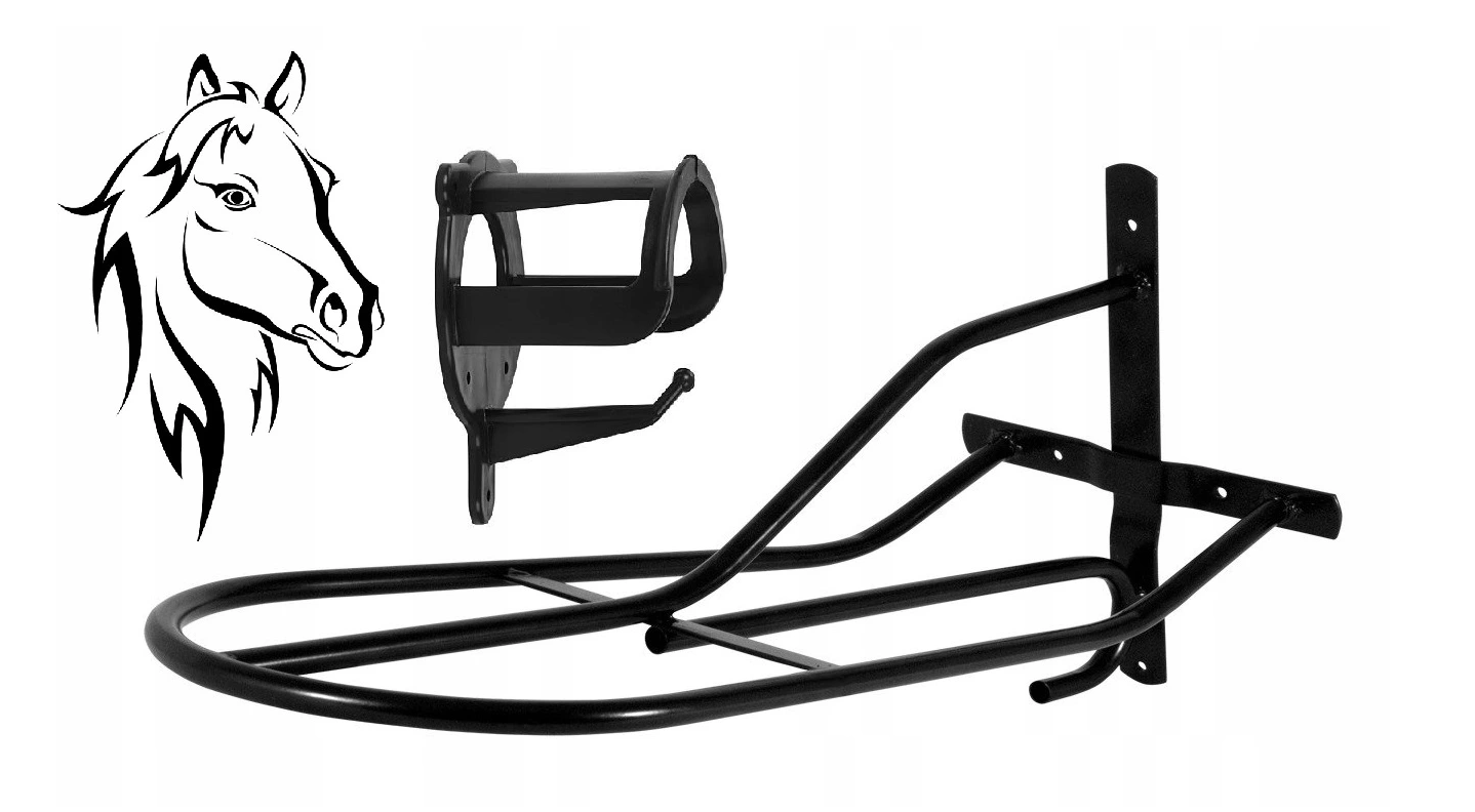 Niezwykle praktyczne i niezbędne wyposażenie każdej stajni. W skład zestawu wchodzi mocny,wykonany z wysokiej jakości tworzywa wieszak na ogłowie w kolorze czarnym, a także duży,metalowy wieszak na siodło.